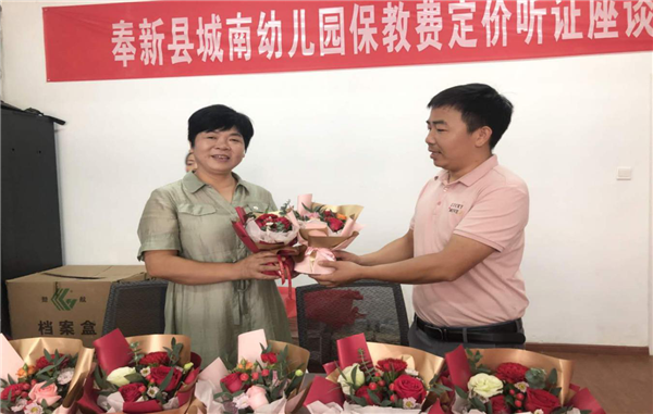 金太英园长陪同参观了幼儿园的教室和功能室,先进完善的配套设施让孩子们有一个良好的学习环境。园长向大家介绍了园内几位优秀教师和她们的优异教学事例。社区也向辛勤的老师们送上鲜花和礼品,以此表达对老师们的尊敬和祝福,感谢老师们的辛苦工作!