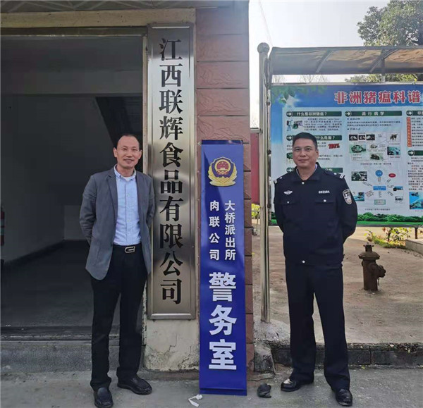 活动过程中,企业负责人陪同派出所相关领导对“肉联厂警务室”进行了进一步指导参观。成立大桥派出所“肉联厂警务室”是当前樟树市公安局开展优化营商环境打造公安优质服务的一项举措,是经过前期反复论证、广泛征求意见建议,后经报上级批准决定成立的一个企业警务室,该企业警务室位于省道樟观线旁,内设接处警大厅、办公室、民警值班室等,主要负责维护辖区周边社会治安秩序;秉承“对党忠诚、服务人民、执法公正、纪律严明”的宗旨,“立足本职、认真负责,牢记使命,服务群众、调解纠纷、宣传法律、共建和谐经济发展”的理念,着力发挥好“小派出所”、调解矛盾纠纷的“小法庭”、抓好厂内和辖区日常安全防范的“小调度室”、便民利民服务的“小办事处”、进行政策宣传的“小课堂”和收集治安信息的“小信息库”等多种功能作用,提高人民群众对樟树公安工作的知晓度和支持率,促进企业健康发展、社会和谐稳定。