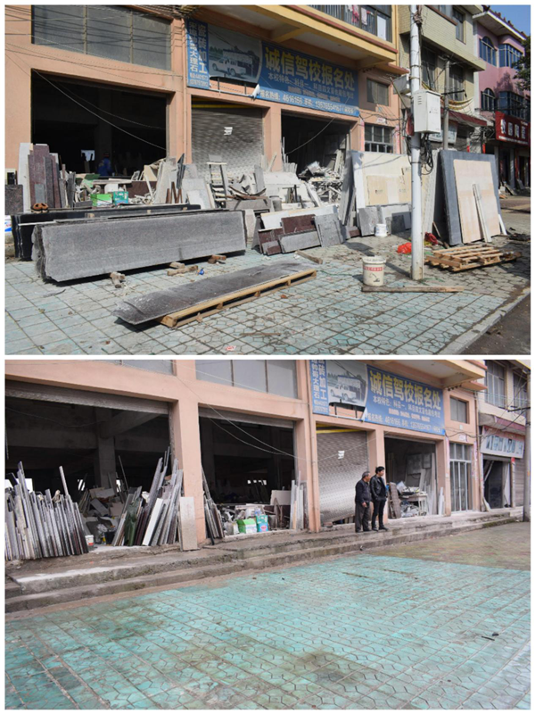 集中整治焕新颜。按照单位庭院卫生、沿街市容环境、主干道沿线卫生等重点,对杂物杂草、卫生死角、破旧广告牌、占道经营、乱堆乱放等现象进行全面清理整治。集中整治期间,清理占道经营35家、劝离流动摊点12个、整治乱搭乱建23处、规范车辆停放64辆、清理广告店招40处、清除牛皮癣200余处、清运垃圾25车。通过集中整治,全镇城乡环境面貌得到大幅改善。