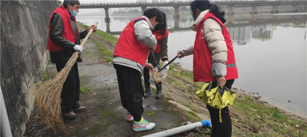 近日,书院社区志愿者们拿着钳子、垃圾袋、扫把来到潦河南岸,对河岸的白色垃圾和堆积杂物进行清理。一路清理,一路打扫,并对收捡的垃圾进行分类处理。细雨蒙蒙中,志愿红在沿河路上形成一道美丽的风景线。