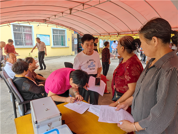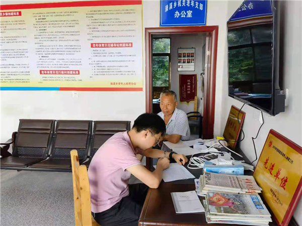 乡干部在老干支部做疫苗接种动员工作