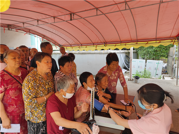 医护人员帮高血压患者测量血压