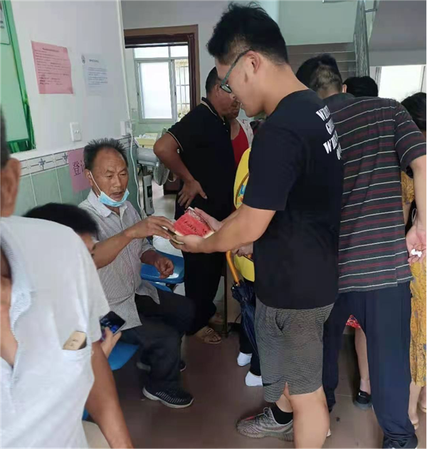 乡干部为疫苗接种群众送上西瓜等消暑物资